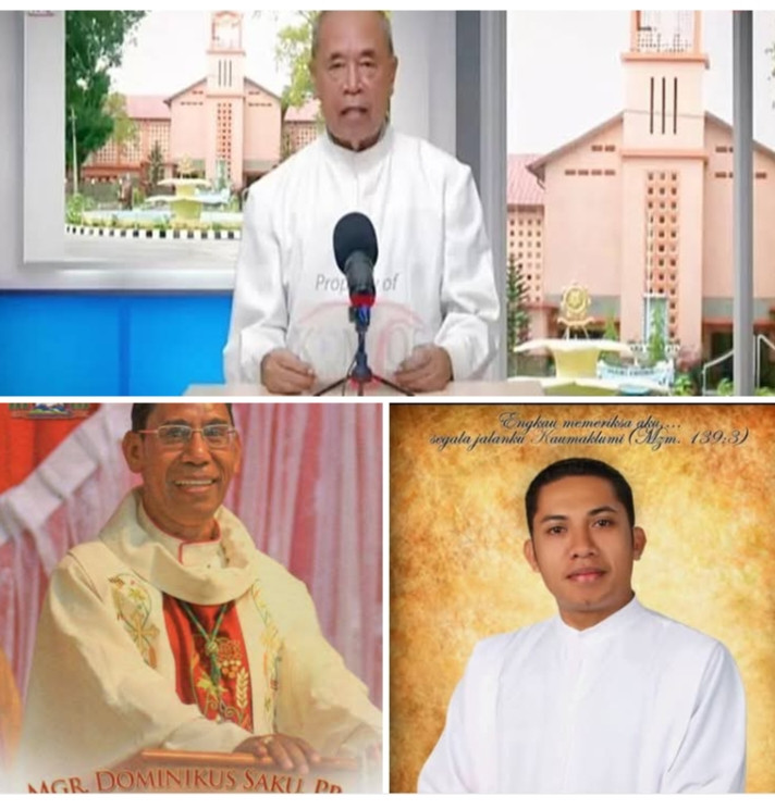 Vikaris Jenderal Keuskupan Atambua, Pastor Vincentius Wun SVD (bagian atas), Uskup Dominikus Saku, Uskup Keuskupan Atambua (bagian kiri), dan Romo Marly Knaofmone, Pr sebagai pelaku kejahatan yang telah diberi suspensi pada Selasa (30/12/2025) oleh otoritas Gereja Katolik melalui Keputusan Resmi Uskup Atambua yang diatur dalam Kanon 1333 Kitab Hukum Kanonik dalam kasus menghamili DU dan telah memiliki seorang anak di Kota Atambua tahun 2017.